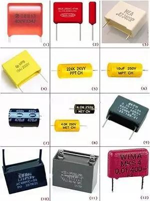 圖1是PPN電容;圖2是PET電容;圖3是MEA電容;圖4MPB是電容;圖5是PPT 電容;圖6是MPT電容;圖7是電解電容器;圖8是MET電容;圖9是MKPH電容;圖10、11是電機用電容;圖12是MKS電容。